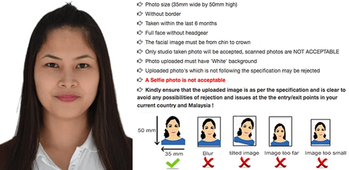 Malaysia eVisa requires a passport-size photo with a white background. Photos taken with mobile phones often get rejected.